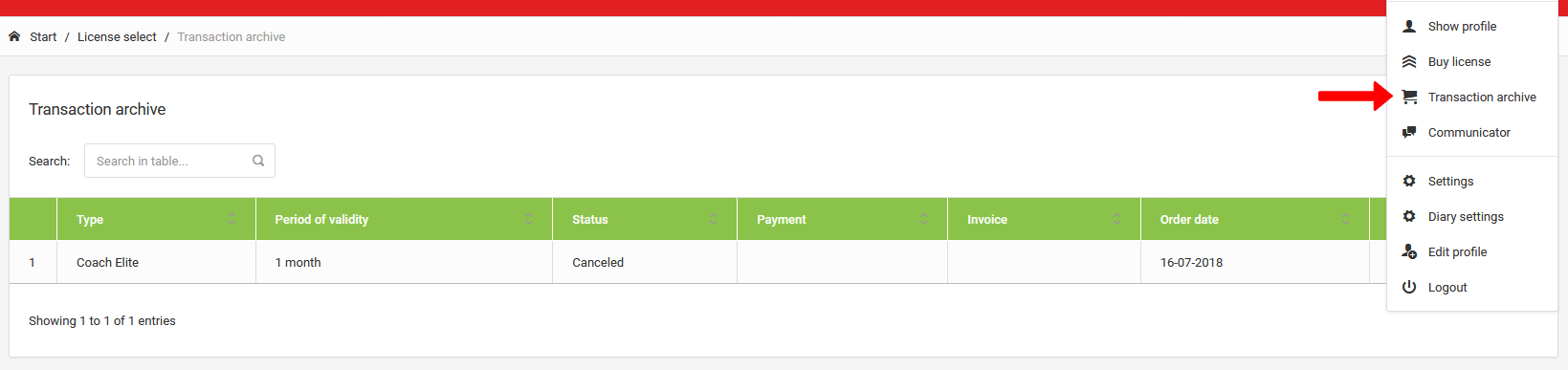 Για μεμονωμένες πληρωμές έχετε πρόσβαση στο αρχείο όλων των συναλλαγών σας. Για πρόσβαση στο αρχείο, κάντε κλικ στο όνομά σας στη δεξιά γωνία της οθόνης και, στη συνέχεια, επιλέξτε "αρχείο συναλλαγών" από το μενού.