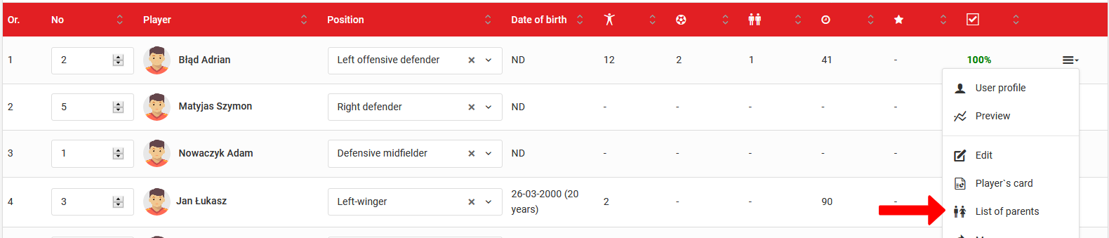 მშობლის ხელით დასამატებლად, გახსენით მოთამაშეების სია, შემდეგ აირჩიეთ მოთამაშე, რომელსაც გსურთ მშობლის დამატება. მშობლების სიაზე დაწკაპუნებისას გამოჩნდება მშობლის დამატების ფორმა.