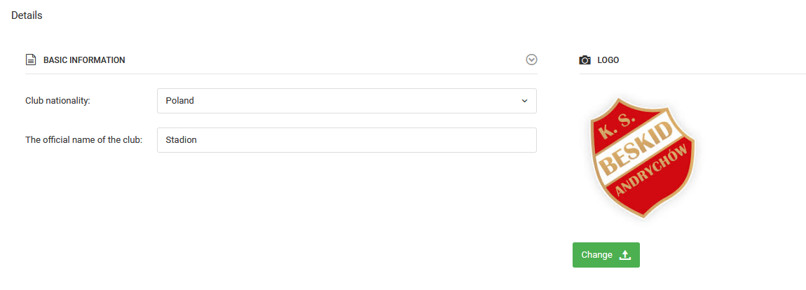 Da dostopate do profila enote/kluba, pojdite na levi meni klub nastavitve profil. Takšne podatke boste lahko vnesli ali uredili kot uradno ime enote, države in grba. Poleg tega lahko na dnu strani izpolnite obširnejše kontaktne podatke kot so naslov enote, kontaktni telefon ali e-poštni naslov.